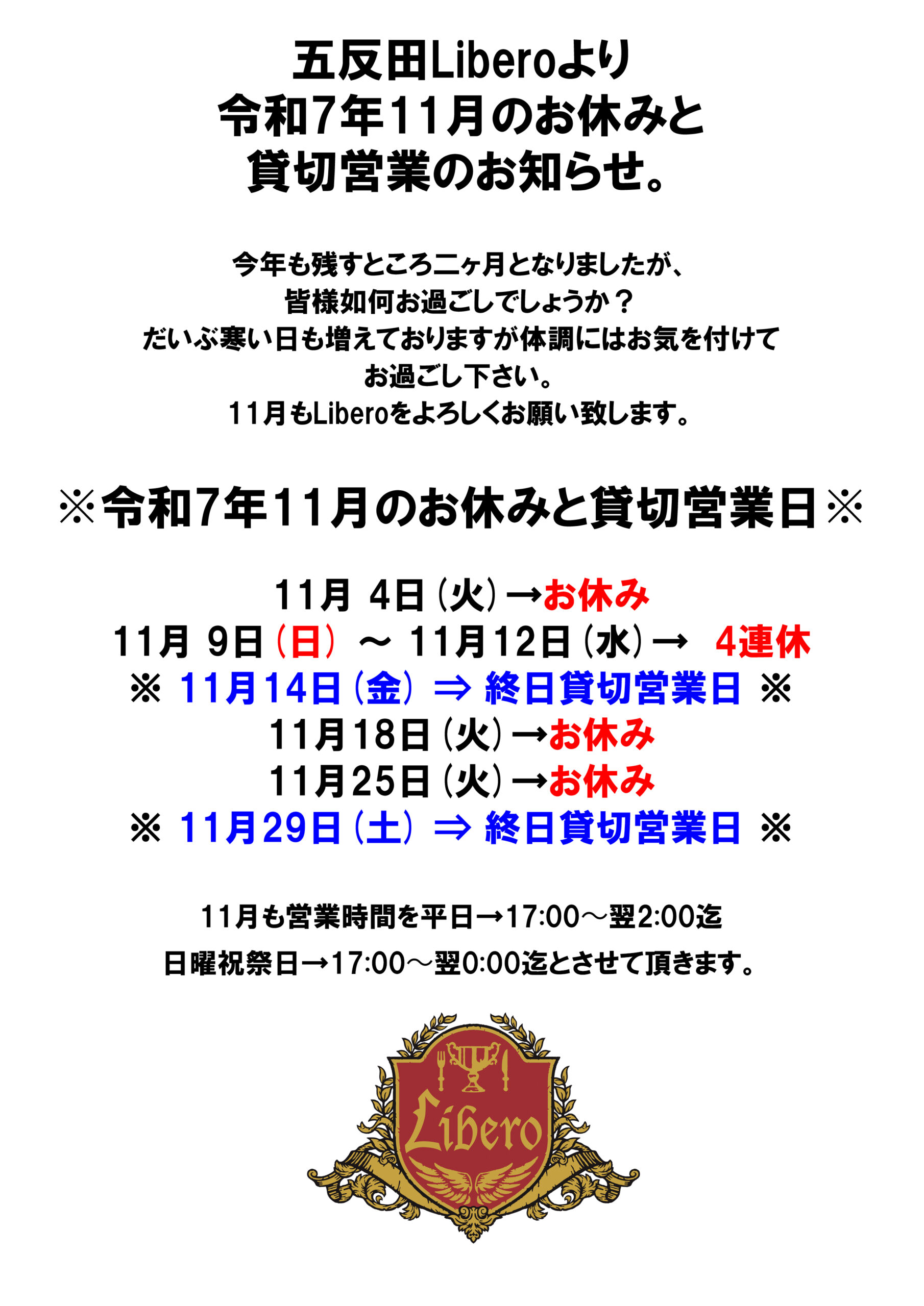 日曜祝祭日→17:00〜翌0:00迄とさせて頂きます。