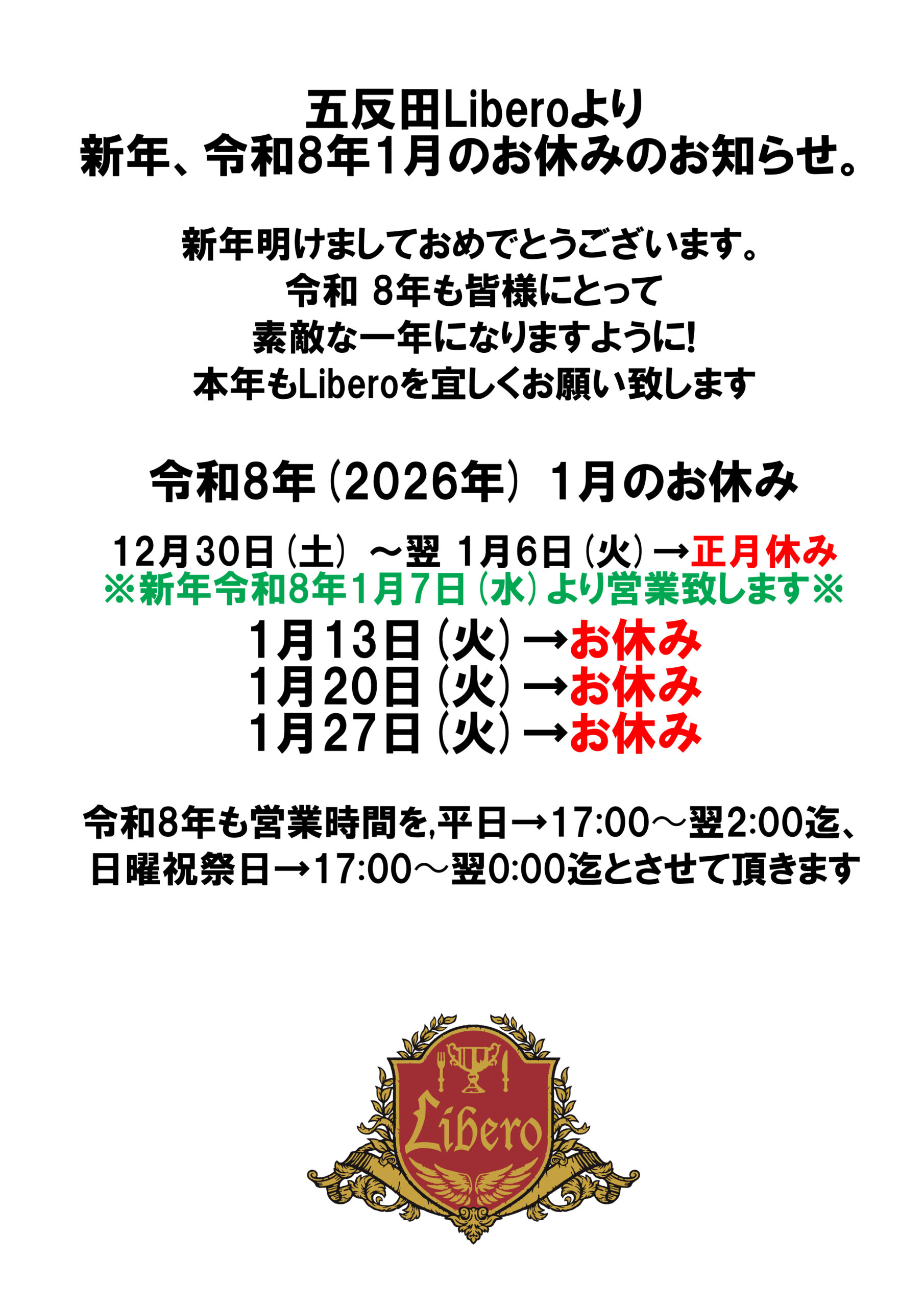 令和8年も営業時間を平日→17:00〜翌2:00迄、